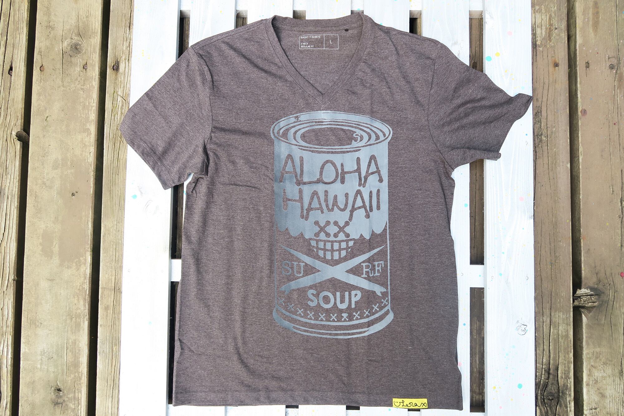 ALOHA SOUP V-NECK TEE 手刷りプリント