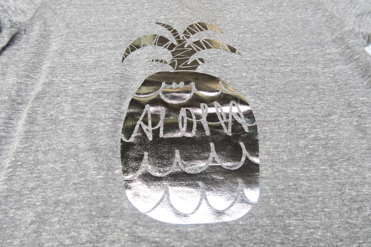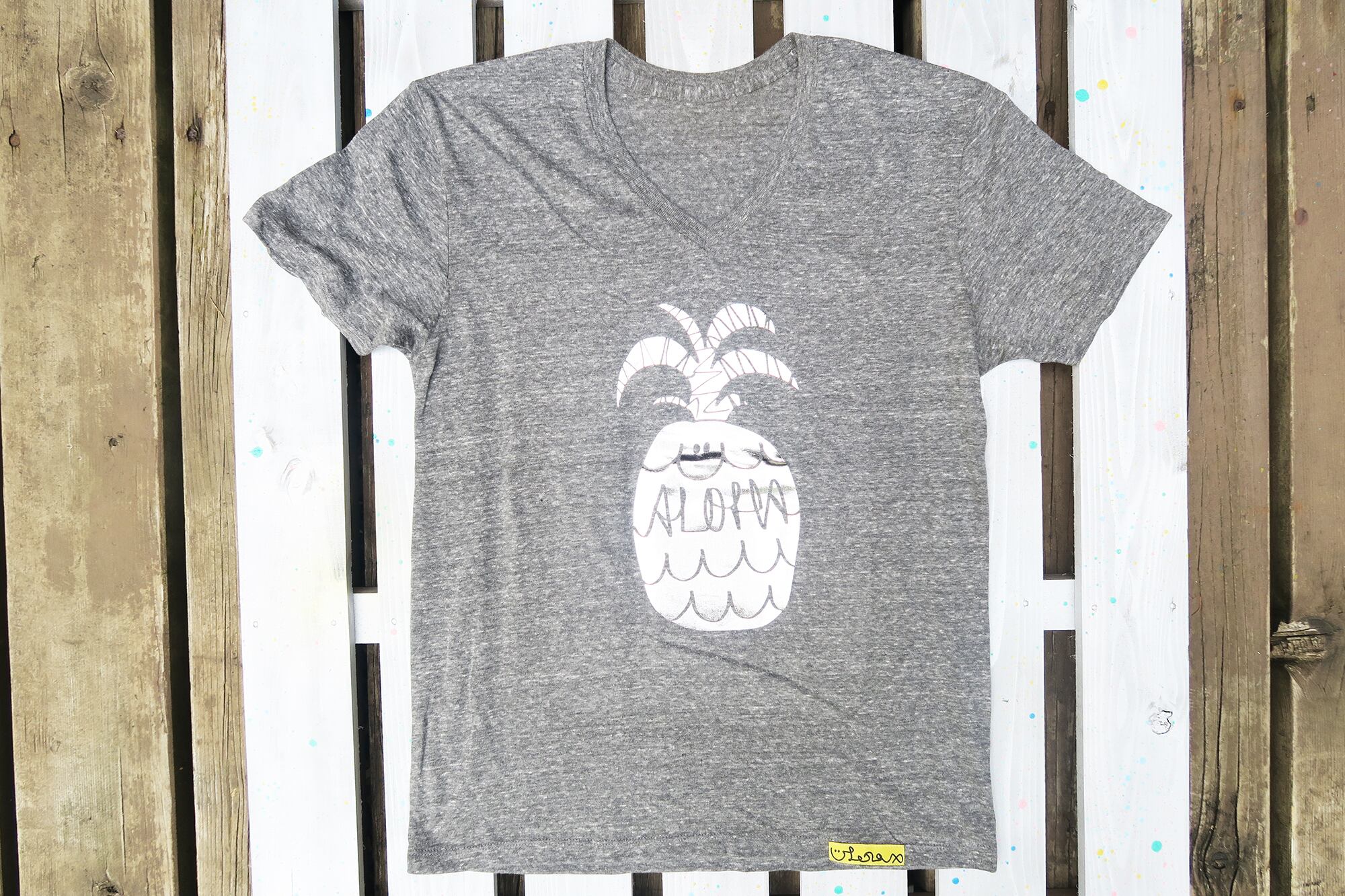 PINEAPPLE TEE - GRAY × SILVER - V-NECK / MEN'S 銀泊プリント