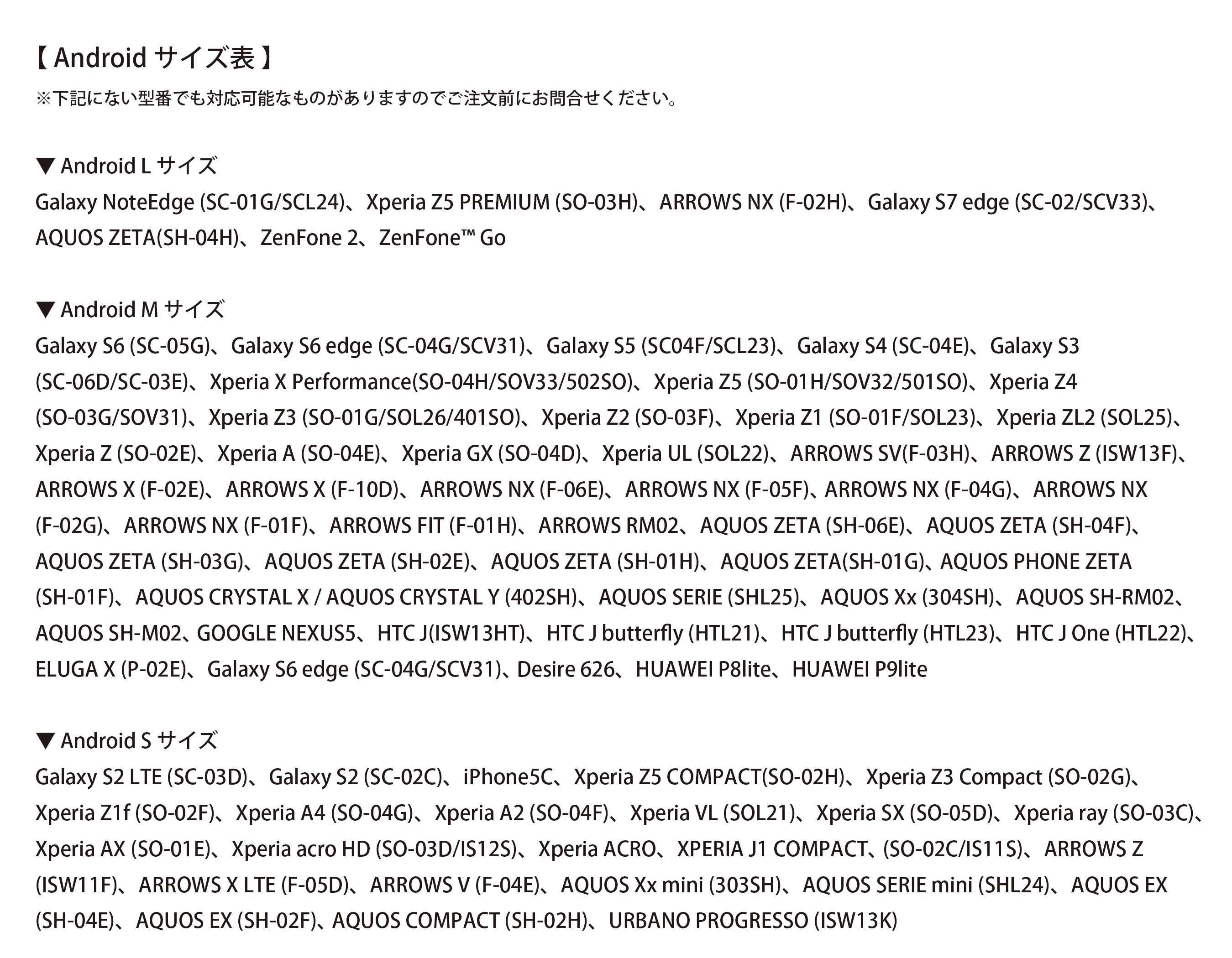 対応機種:iPhone6/6s、iPhone6 Plus/6s Plus、iPhone7、iPhone7 Plus、Android端末(画像のAndroidサイズ表よりサイズをご確認ください)